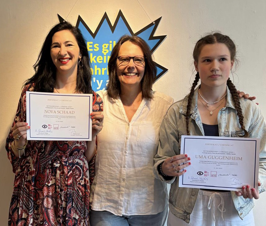 de gauche à droite: Zora Schaad (mère de la lauréate Nova Schaad), Katja Bianchi Waldis (co-curatrice) et Uma Guggenheim (lauréate).