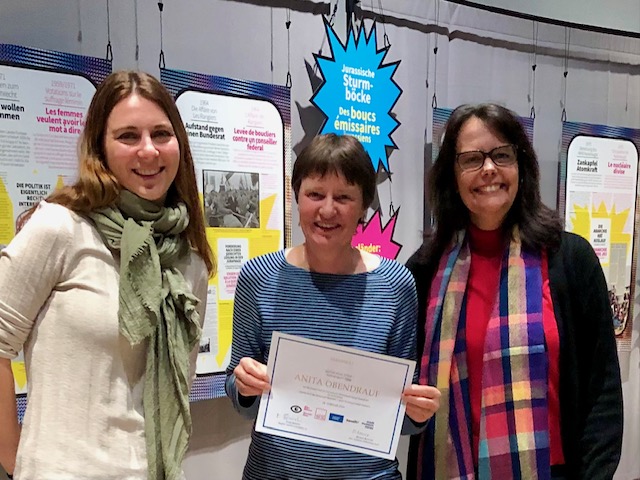 de gauche à droite : Mirjam Brunner (Stadtmuseum Aarau), Anita Obendrauf (lauréate catégorie adulte) et co-commissaire Katja Bianchi