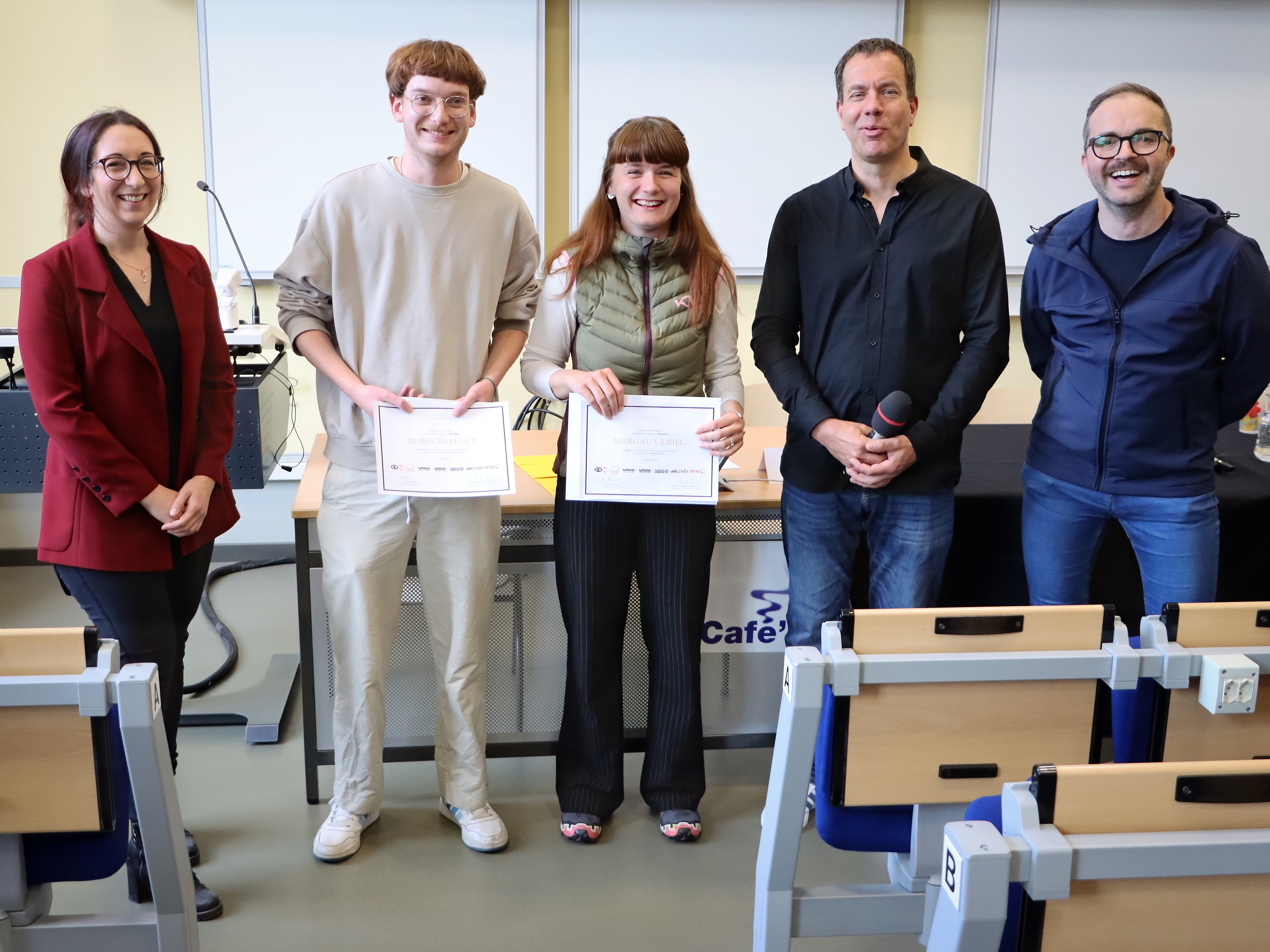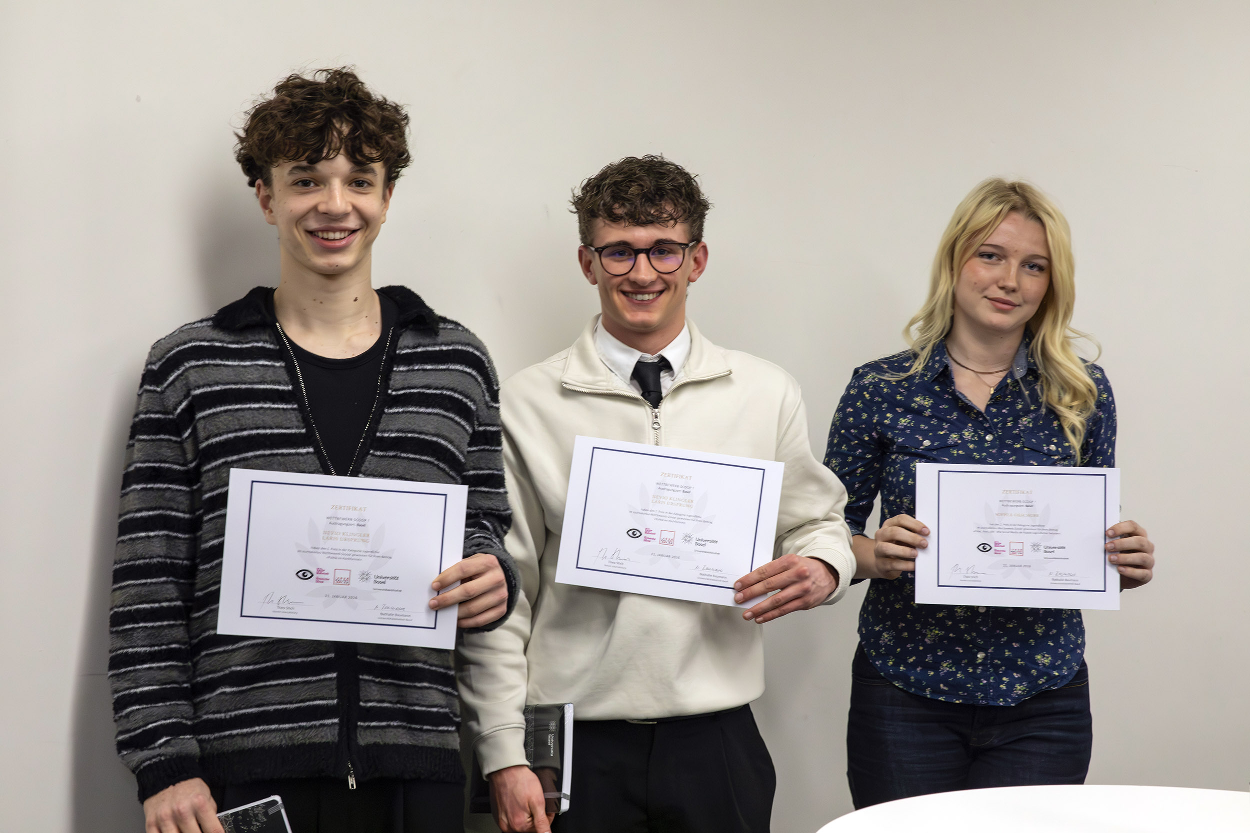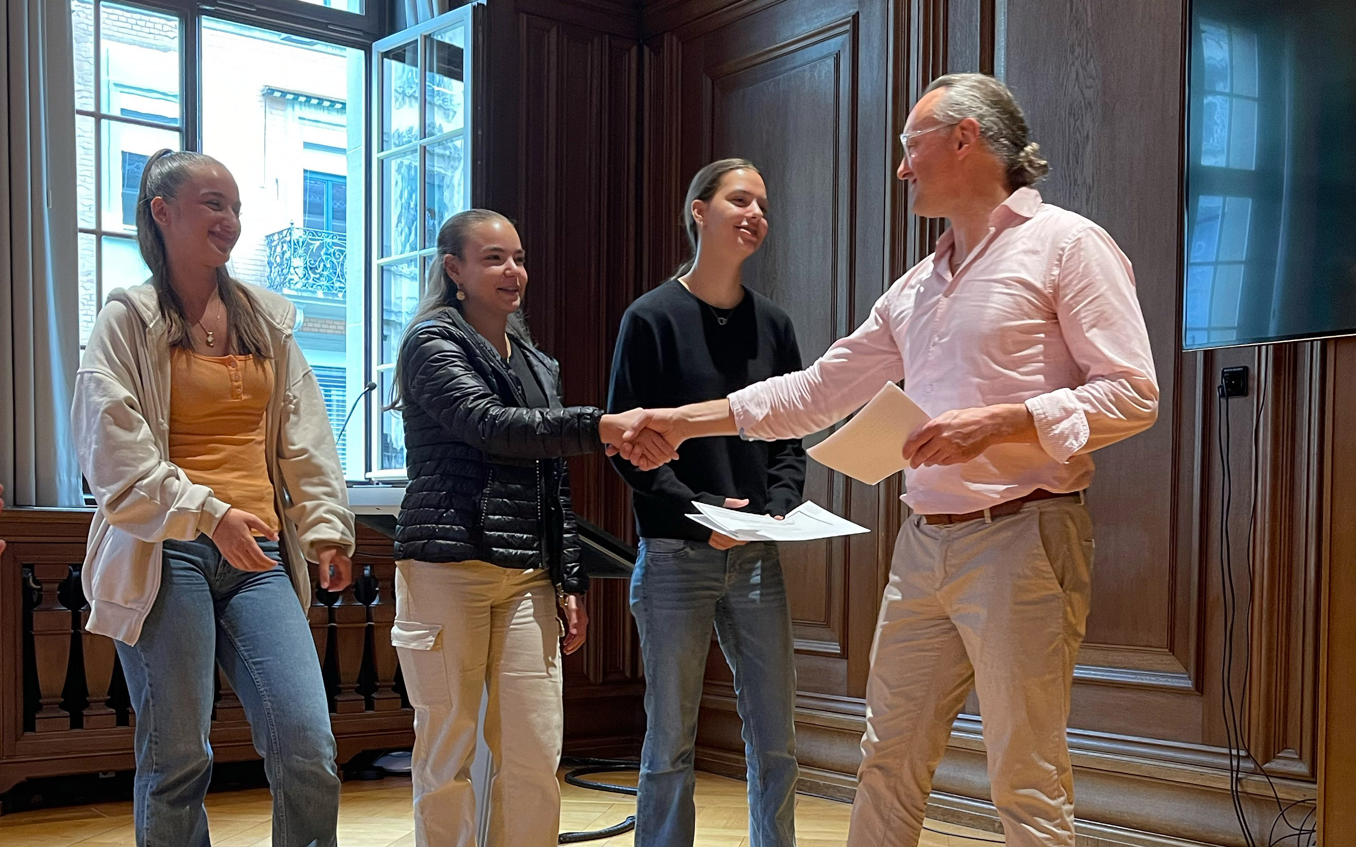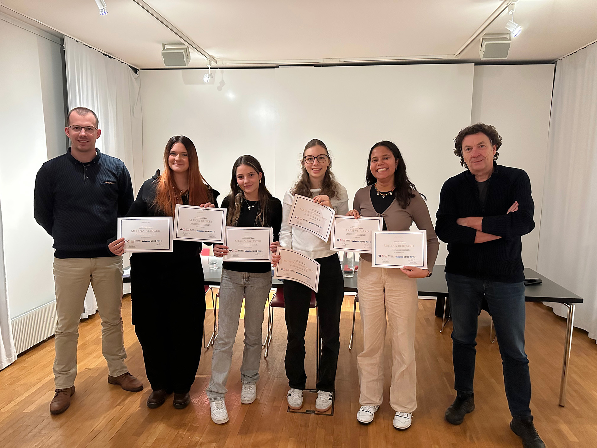 de gauche à droite : Sarah Sulimanovskis, Michelle Nushis & Ajshe Durakis avec Thomas Gull (membre du jury)